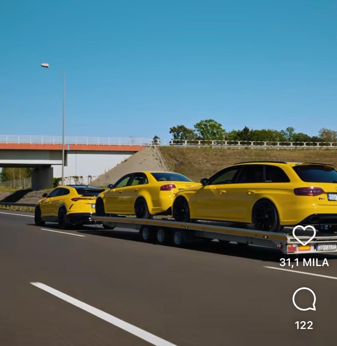 EDLES LAMBORGHINI ZUGFAHRZEUG MIT AUDI RS MODELLEN AUF DEM WEG ZUM FAHRERTRAINING