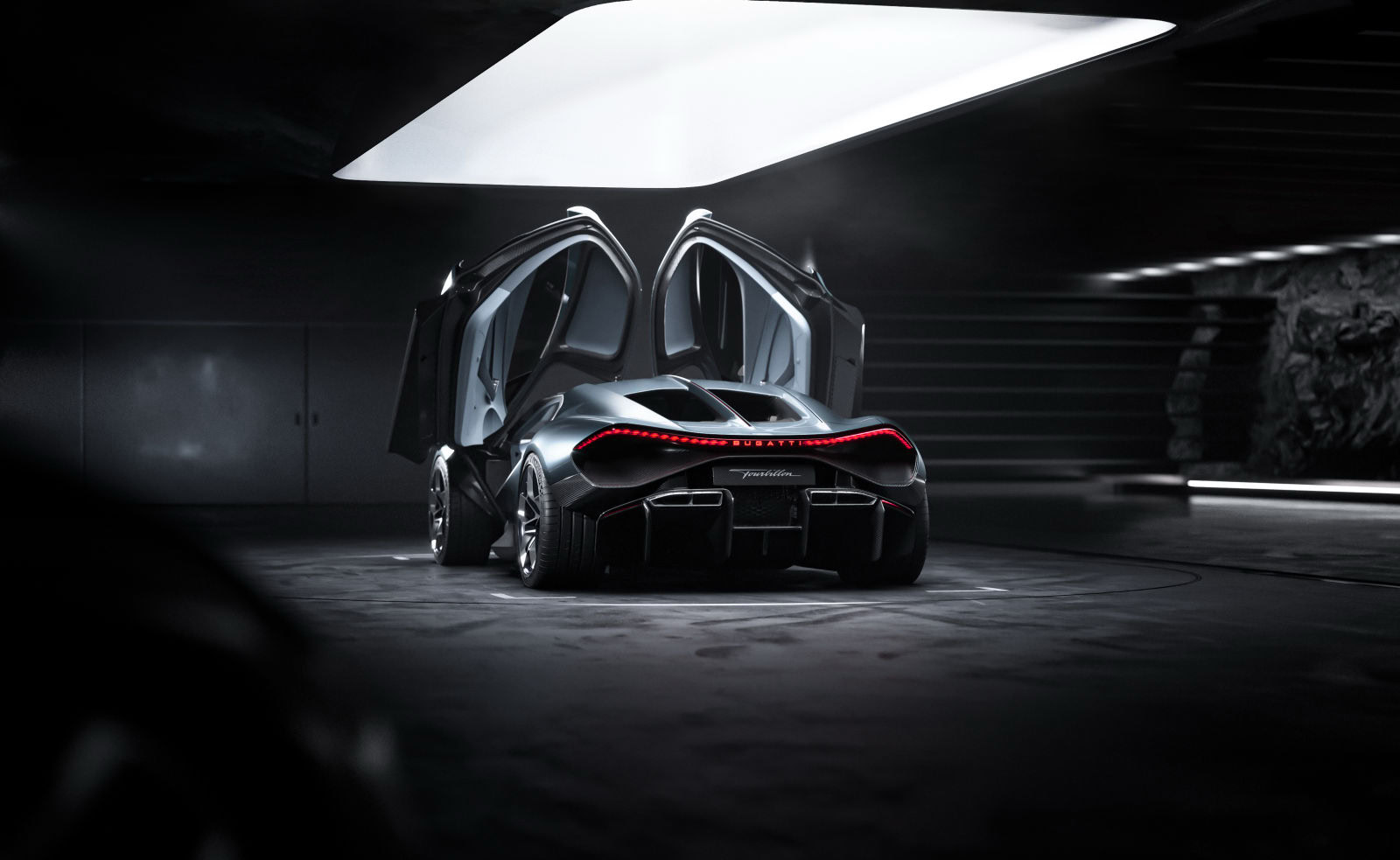 NICHT NUR AERODYNAMIK, SONDERN AUCH DIE THERMODYNAMIK DES SUPER-SPORTWAGENS WURDEN AKRIBISCH OPTIMIERT. DIES IST DER LEITGEDANKE DES TOURBILLON, DER SICH UM VIER VON DER GESCHICHTE INSPIRIERTE BUGATTI DESIGNELEMENTE HERUM ENTFALTET: